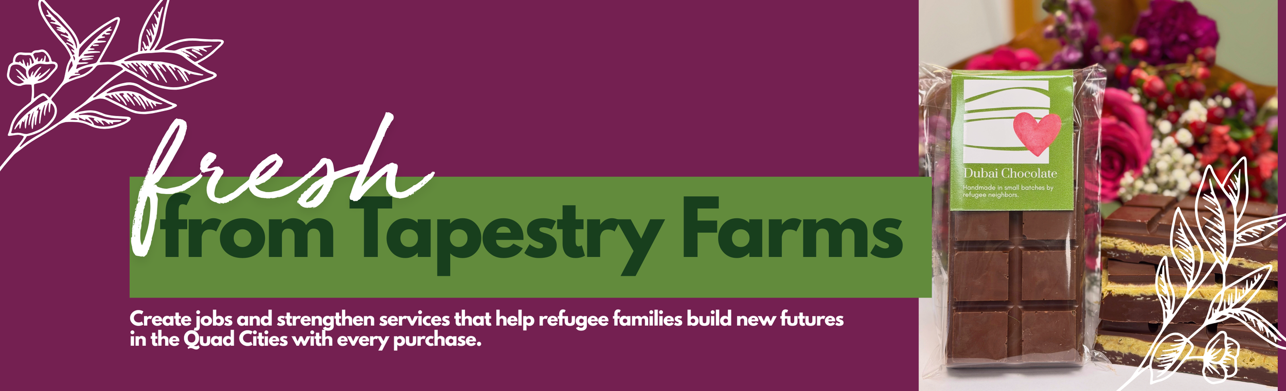 Our Dubai chocolate is created by our farm team, which includes refugees from across the globe who now call the Quad Cities home.