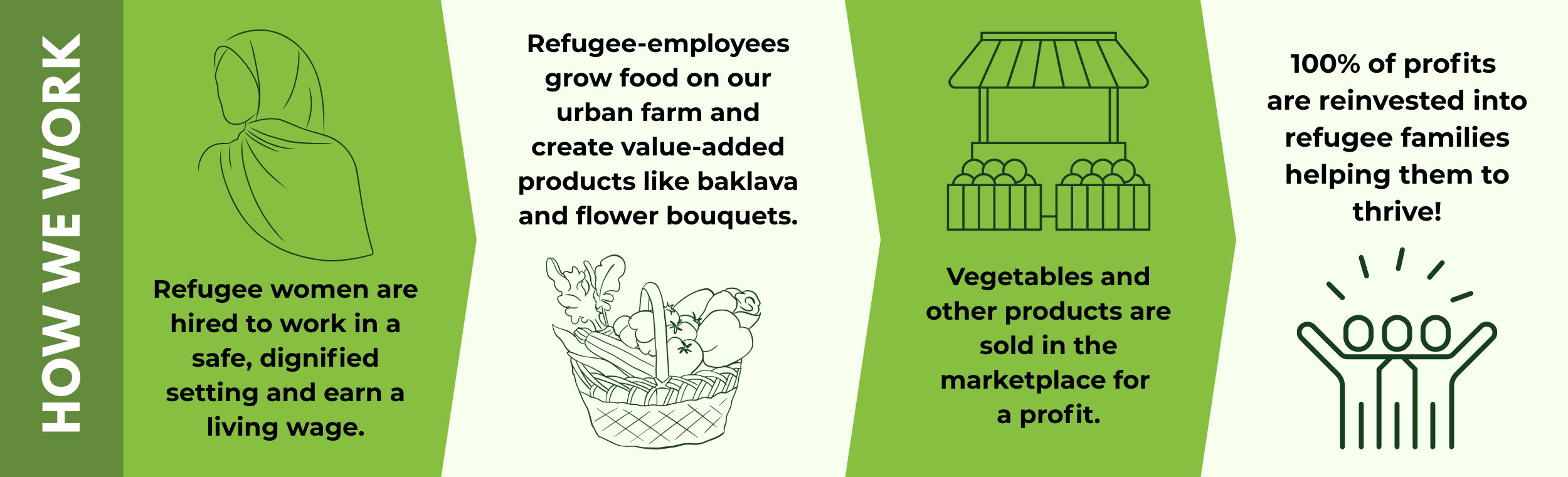 With every purchase, you help to create jobs and strengthen services that assist refugee families in building new futures in the Quad Cities.